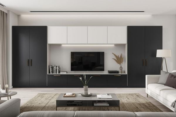 現代風格注重功能性與簡約線條,強調空間的開放與俐落感,營造時尚且整潔的居家環境。系統櫃配色建議以白色、灰色和黑色為主,淺色調可以讓空間更顯寬敞與通透;深色系統櫃則可以提供強烈的視覺焦點,若搭配霧面或金屬元素,也可提升整體空間的設計與層次感。