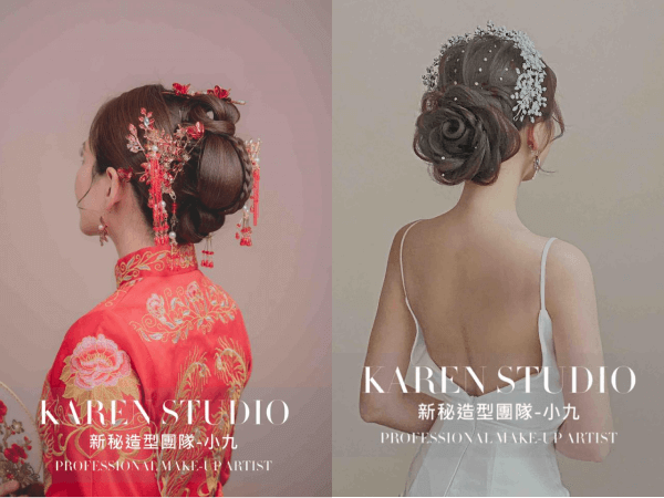小九Jiou是一位隸屬於Karen新秘團隊的專業造型師,擅長韓系清透妝感和精緻的眼妝設計,曾經參與多場婚禮和商業拍攝的造型設計,妝髮設計相當細膩,並且能根據顧客的需求客製化調整。