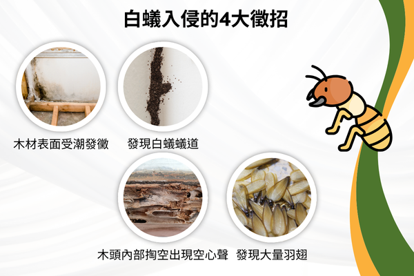 白蟻喜歡陰暗環境,平時不容易發現,但如果家中出現以下4項徵兆,請提高警覺並著手開始制定防治計劃,避免危害擴大:
