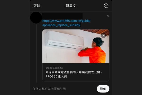 發布串文時,只要貼上網站連結,串文中即會自動生成網站預覽圖,提升訊息的吸引力及閱讀體驗,有效將用戶導流到其他網站。