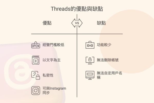 - 經營門檻較低:Threads以文字為主的發文形式,使得使用者的入門門檻較低,使用者不需要具備高超的拍照或拍片技術,用Threads經營社群的平台,也可以節省拍攝照片和影片的費用。
