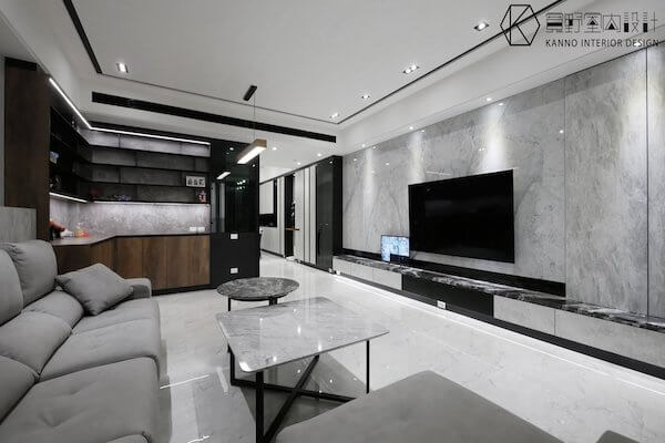 除了使用淺色系與大片的窗戶來提升透天客廳的採光外,您也可以與設計師溝通後,在空間中添加鏡面、金屬等有光澤的反光材質,反光材質具有有放大、延伸空間的視覺效果,可以增添透天客廳的層次感。