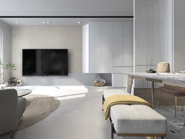 設計電視櫃時需要先了解客廳的空間大小,不符比例的電視櫃除了影響電視牆的視覺質感,也容易影響使用便利性。若家中客廳坪數較小,建議使用懸浮或簡約設計以減少視覺壓迫感;大坪數客廳空間則可規劃整面牆的收納櫃體或複合式設計,甚至搭配燈光與材質變化,提升居家氣勢與功能性。