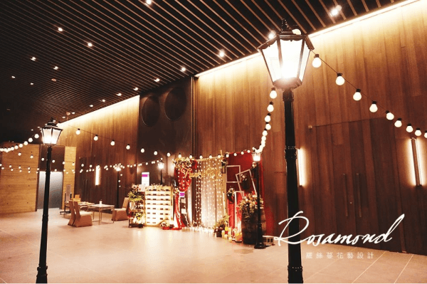 迎賓區是賓客們踏入婚禮現場的第一印象,通常會設置簽到桌、照片展示架與主題背板,藉由新人合照、交往紀錄或訂婚照展現兩人的故事與風格。佈置上可結合花藝、燈串、木質元素或金屬框架,讓空間更具層次感,若婚禮有明確主題,建議應於迎賓區的色調和道具上提前鋪陳主題元素,讓賓客一入場就能沉浸於婚禮主題中。