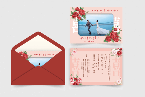 傳統的中式喜帖通常採用直排格式,從右至左書寫,不過現代也常見橫排書寫的樣式。
