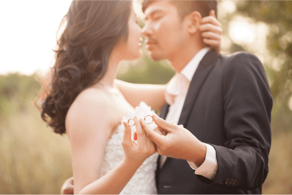 戒指是婚禮中最具象徵意義的物品,婚紗照中特寫戒指、或拍攝新郎為新娘戴上戒指的畫面,都能展現愛的承諾與細膩情感。