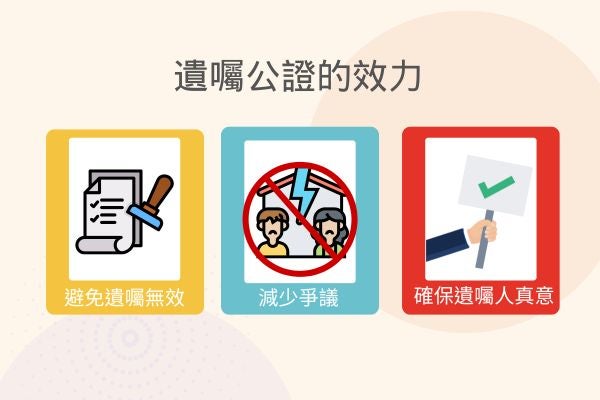遺囑公證具有強大的法律效力,能約束遺贈人身份並確保遺囑的真實性和有效性,減少日後繼承人之間的爭議;此外,公證遺囑後,立遺囑人只要還在世,仍可以隨時更改或是撤回遺囑,避免立遺囑後遭受遺贈人不當對待。