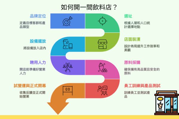 開飲料店除了要計算成本外,還需要經過縝密的流程規劃才能順利開幕,以下為您整理開飲料店的大致流程供您參考: