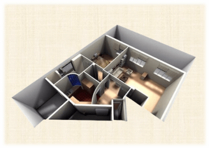 房屋格局是否方正會影響清潔難度,例如:下圖的戶型呈不規則矩形,房屋中有較多死角與狹窄處,相對增加清潔人員的工作困難度,在估價時清潔報價會較高。