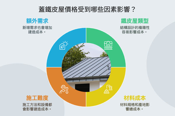 評估鐵皮屋興建預算時,除了鐵皮屋的建材費用外,興建過程前後還有許多額外費用,以下整理建造鐵皮屋時需要的額外費用供您參考: