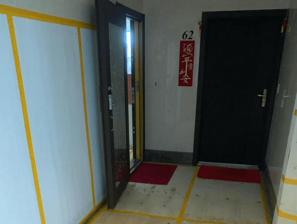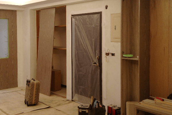 大門是進出施工現場的主要通道,容易在裝潢過程中產生碰撞,施作保護工程時會使用保護膜或緩衝材料覆蓋大門。
