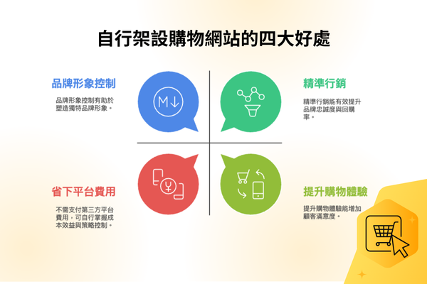 有別於在第三方電商通路上架商品,架設專屬的購物網站有以下4點優勢: