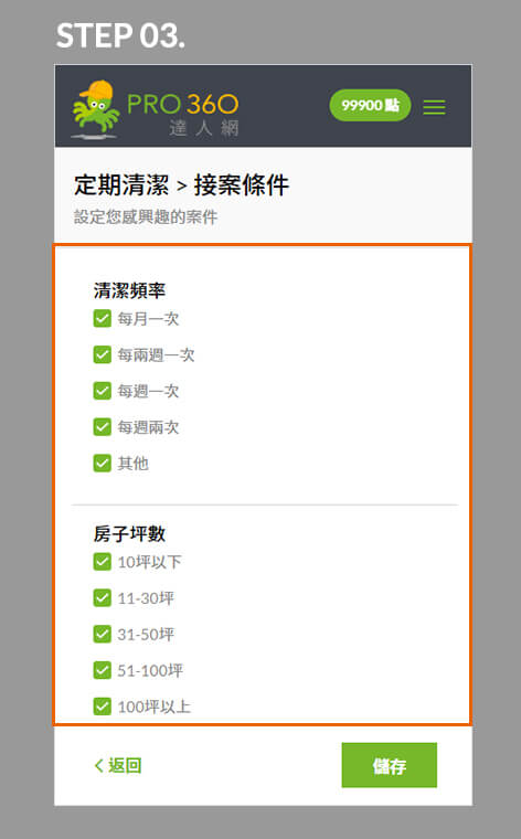 【服務方式】、【服務範圍】、【接案條件】等設定等同於您可接受的合作條件,請讓我們更加了解您的相關資訊,透過推廣服務,我們希望能協助您更具體掌握您想要的案件。