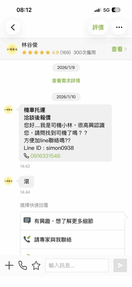 .....如另有其它特殊需求可先告知討論...期待更能協助您,獲得最好的解決方案....司機小林敬上