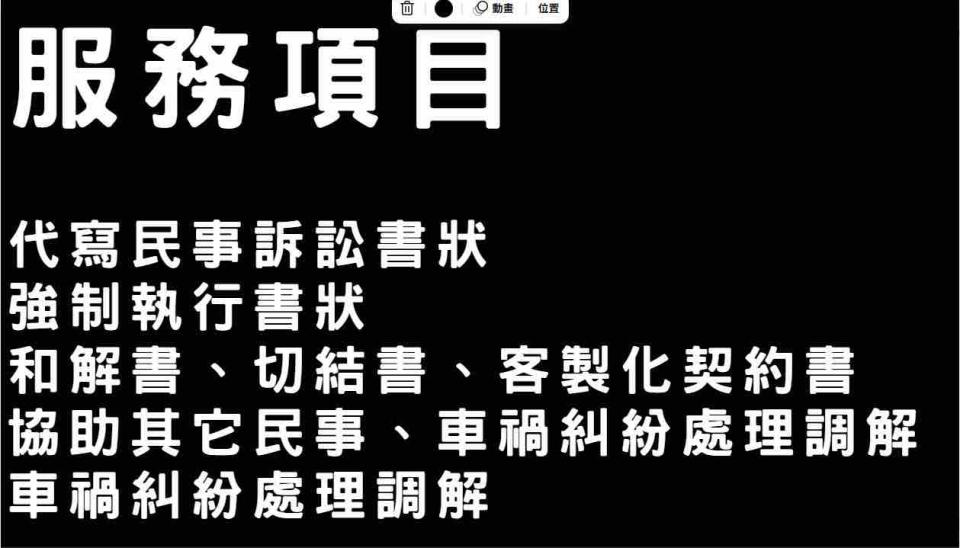有豐富的民事法律相關工作經歷,可協助大多數民事糾紛或其他複雜的案件,並規劃更好的解決方案。實務能力會比您所花的時間跟金錢來的更物超所值。