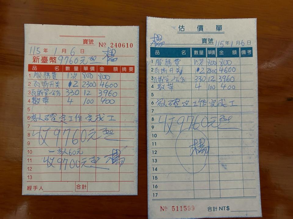 在維修前,我自己沒有先詢問清楚價格!是我的失誤!我認了!維修完成後,在廚房的流理台上,寫了兩張單子叫我簽名!讓大家參考一下!請記得,維修前一定要清他們報價!維修前一定要清他們報價!維修前一定要清他們報價!