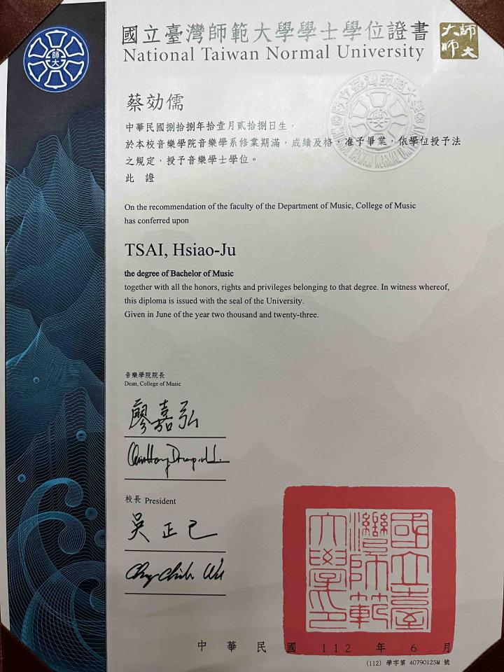 2023年畢業於國立臺灣師範大學音樂系,並正取進入師大音樂系碩士班就讀。曾接受Heiko Tribener、Øystein Baadsvik、Thomas Leleu、Micky Wrobleski、藤田英大等著名演奏家之大師班指導。現接受Los Angeles Brass Academy之指導。