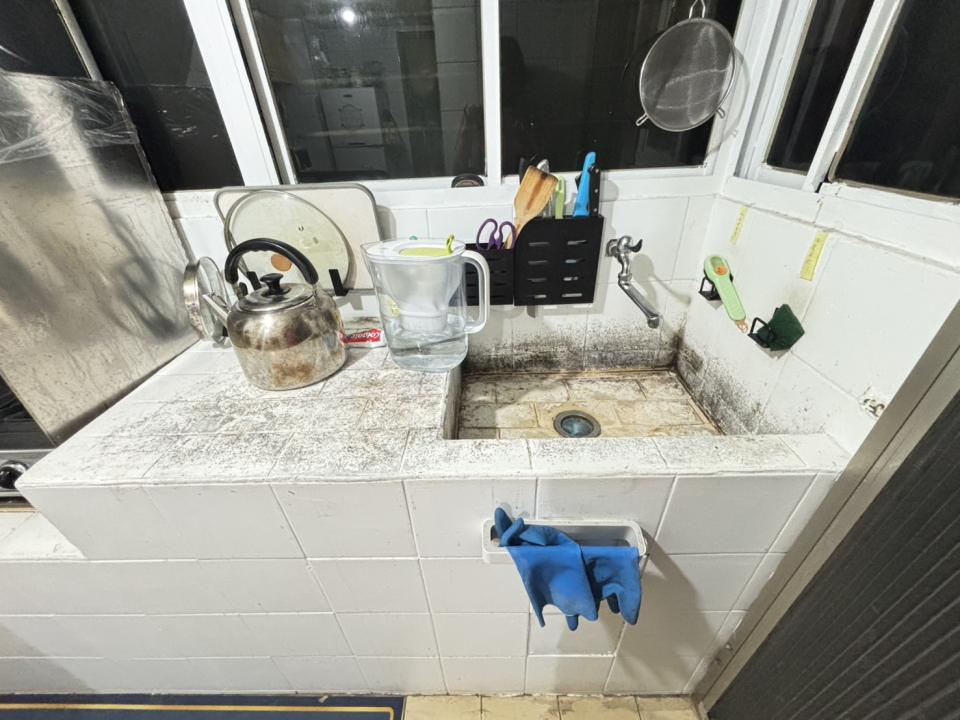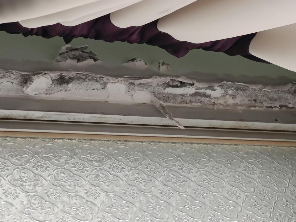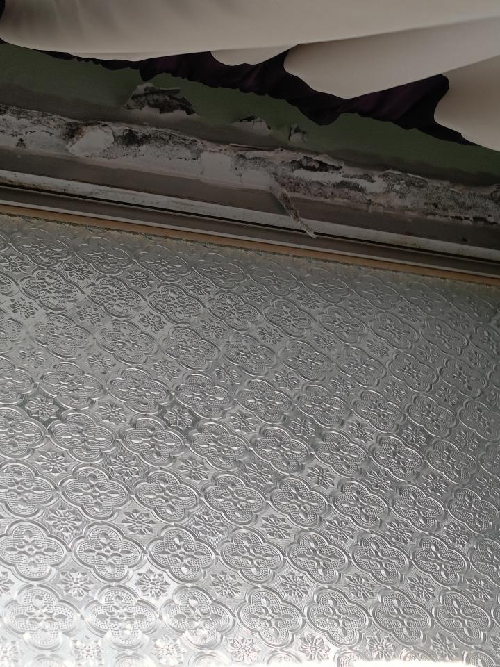 上週颱風天 目前封起來的板附近牆壁有水一直漏到地上