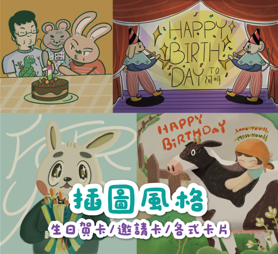 插畫風格各式賀卡