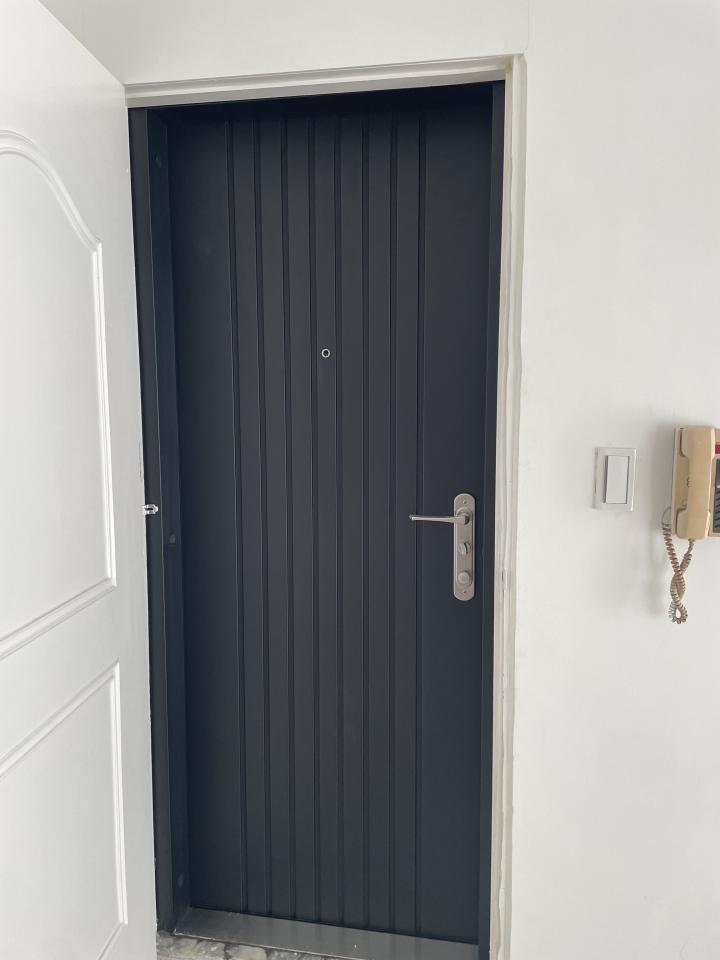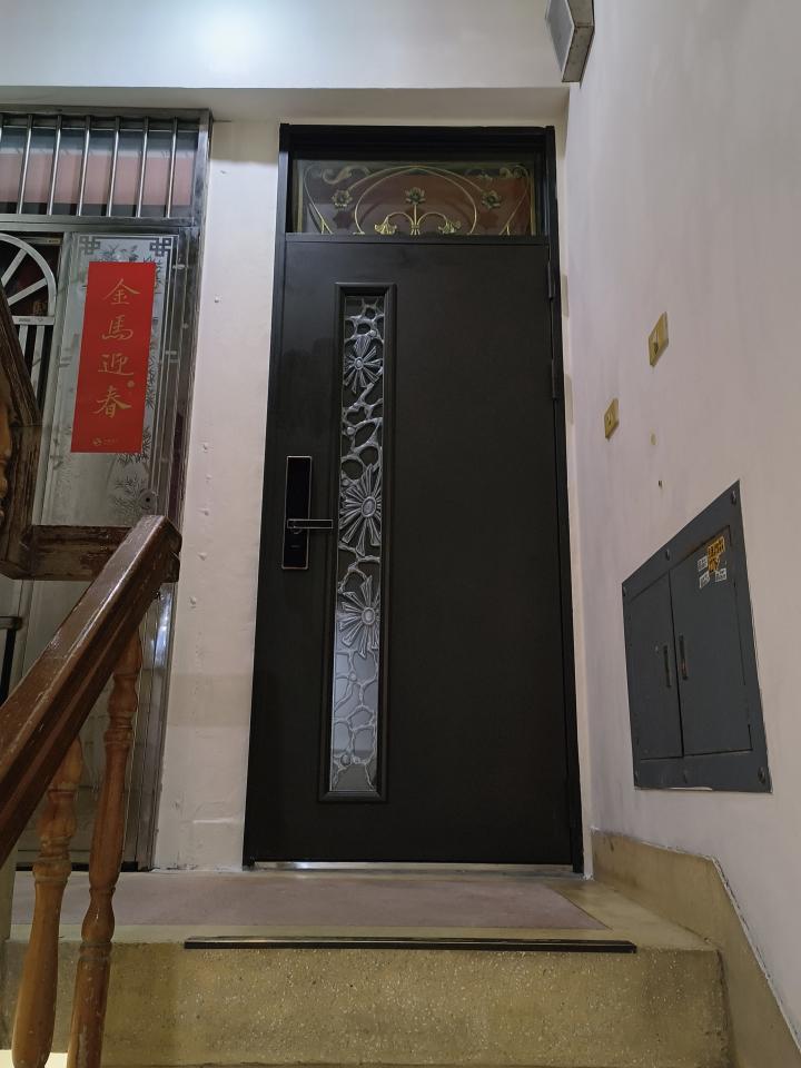家是無電梯公寓。 雙玄關的新門含電子鎖,做的實在很令人滿意。 門嵌的很正,裡面牆壁是小塊7x7cm磁磚,拆門居然都沒有造成任何破壞,只是新門框的外邊縫隙只能上泥作填縫,是黑色,而我家門外牆是百合白。因有工作,還要帶孩子與照顧長輩,所以我又花了三個月半,到過年期間老人家回南部過年,我終於慢慢的完成補土與上漆的美化工程。 感謝陳師傅的施工團隊,幫我們把溫馨家園的大門做的這麼標緻與美麗,感覺運氣都因此變好了。