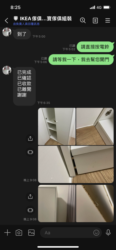 組裝完成當下有請對方太太驗收完成沒問題才離開,當下也有告知門片歪斜問題是地板不平整導致,我們每個工程結束都絕對會請客戶驗收當下確認沒問題人才會離開喔!