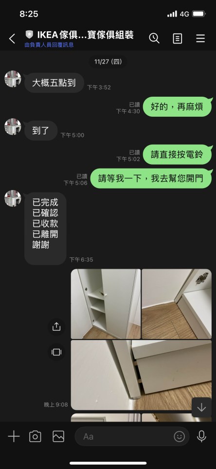常見問題 1.自我介紹 本人以前是木工師傅 目前已全職組裝傢俱多年 舉凡淘寶傢俱系統櫃(無組裝說明書) IKEA傢俱拆裝運送 蝦皮合馬傢俱等等 窗簾軌道安裝 電視壁掛架安裝 紗窗更換 都有在做以上服務 2.專業背景 IKEA傢俱拆裝運送,裝潢木工,裝潢拆除,清運,傢俱組裝,一般搬運,窗簾軌道,電視壁掛架,傢俱上牆服務,紗窗更換,皆可服務 3.服務方式 全台皆可服務 4.收費方式 以件計價 5.來往客戶 淘寶傢俱組裝 IKEA傢俱拆+運+裝 傢俱維修 抽屜軌道 櫥櫃門片鉸鏈五金更換修復 衣櫃滑門修復 紗窗更換 窗簾軌道安裝 6.案例分享 很多,檔案中也有很多照片分享 7.專業建議 給予最經濟實惠的建議