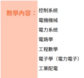 教學科目:高職電工機械、高職數學、高職電子學、高職基本電學(有自編講義)