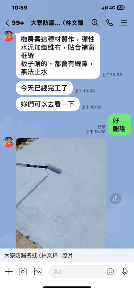 常見問題 1.自我介紹 油漆,木門烤漆 外牆彩繪 室內油漆,壁癌處理 外牆,屋頂,頂樓防水 2.專業背景 多年裝潢油漆,烤漆 外牆彩繪,文字書寫 頂樓防水,漏水處理 3.服務方式 室內外油漆,外牆防水,屋頂漏水防水工程,鐵皮屋頂防水工程,壁癌處理 4.收費方式 依現場狀況估價後才施工 5.來往客戶 鐵皮屋頂漏水,外牆屋頂防水,裝潢油漆,室內外批土,粉刷 壁癌處理 6.案例分享 如照片內容 7.專業建議 漏水,防水施作必須真正有多年經驗