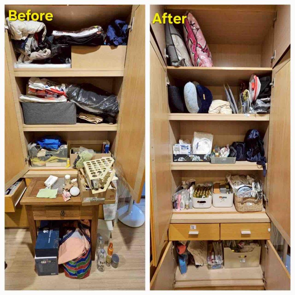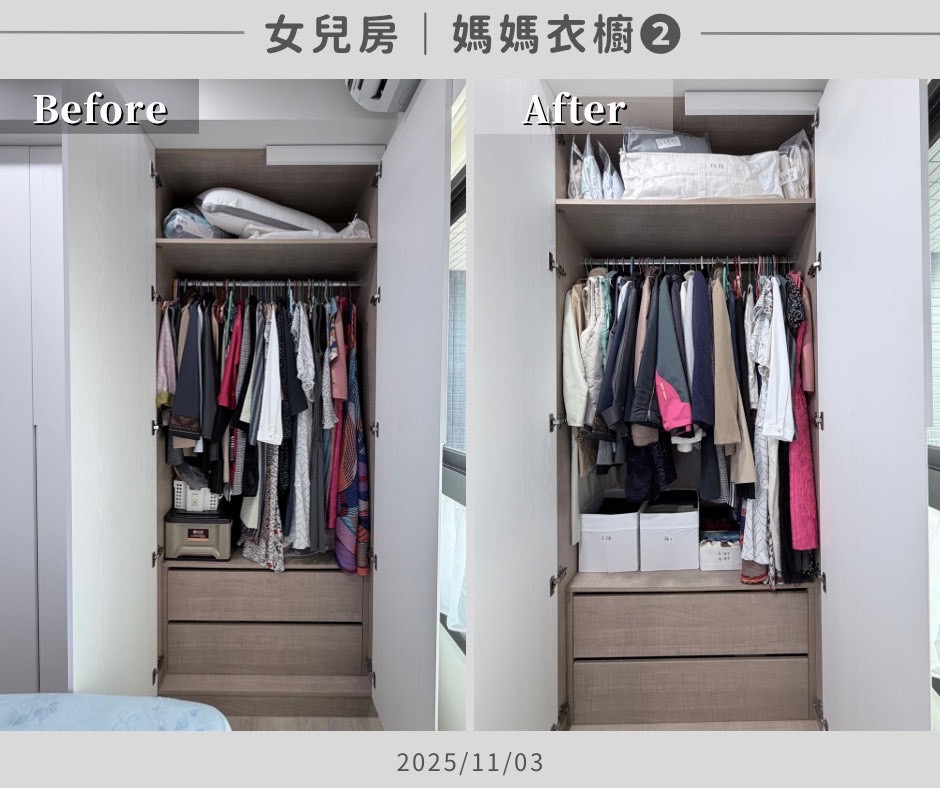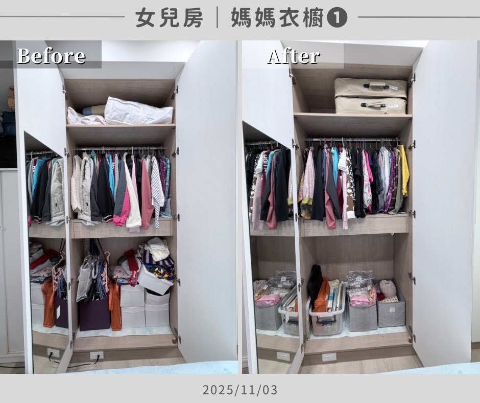 Oh My God !這是我這幾年花過,最最最最值得的一份服務了!真的好專業!改造過後的擺放,從剛進門,隨手拿出門專區,到鞋子區,到保健品藥品區,到衣服區運動上班區,還分了夏天冬天,不用再衣服太多放不下堆在床上一大堆,我有乾淨純睡覺用,不會睡一半踢到自己收納的衣服的床鋪了~然後我的精品包包終於有了展示區~最重要!到我最最感動的書桌區,從頂到底從左到右,都讓我一目暸然!我求學這麼多年,第一次!!有這麼乾淨又方便取用電+書+文具+取用出門書包+隨手保養~的超大書桌喔!是我可以用的桌面喔!同一個桌子,我多了三倍空間,還有更多倍的便利!真的交給專業的就對了!我好感謝兩位整理師,以及推薦我整理師的好姐妹!這是換更大的租屋處,也換不到的生活便利。煥然一新好清爽,整個人都覺得清爽了,覺得好事好運氣都會跑來了!超愛妳們love u!!! :D