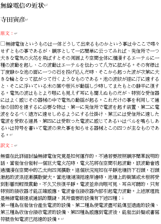 常見問題 1.自我介紹 日中翻譯,和Lionbridge、電心萬象、CCJK等各大翻譯社及公司行號合作,已有多年經驗。 主要翻譯領域為動漫遊戲類、電機電子類,會使用Memoq、SDL Trados、Memsource等翻譯軟體。 2.服務方式 日翻中筆譯 3.收費方式 翻譯速度為每日3000~4000字、一週約可翻譯15000~20000字(視翻譯領域、難易度而定),會使用SDL Trados、Memsource、memoq等翻譯工具,價格視難易度而定,若字數多且固定可調降。