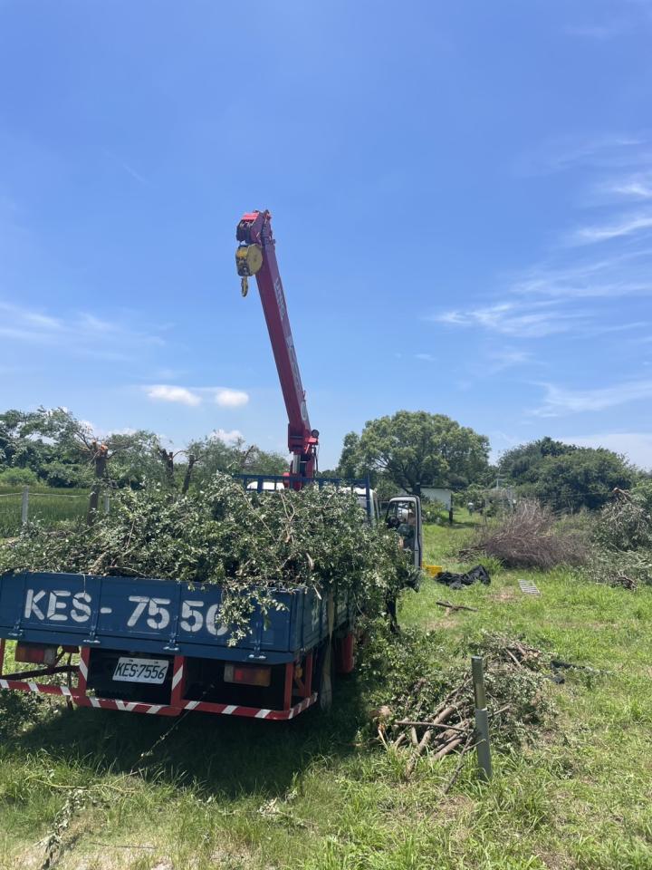 崇勝園藝 - 幫業主修樹 影響到隔壁鄰居 專業人員與吊車