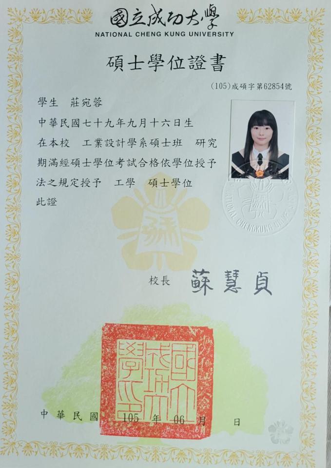 您好,我是莊宛蓉,成大工業設計碩士畢業,入社會資歷10年,現為論文家教及自由文字接案者。