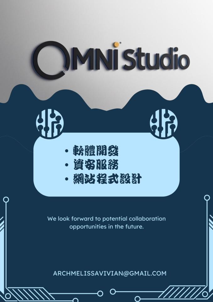 常見問題 1.自我介紹 Omni 工作室成立於2024年03月,專注開發業務軟體及應用網頁,亦有提供資通安全與雲端環境建置服務,長期合作對象包含 NT世界(https://www.ntworld.com.sg/) 或聖吉科技有限公司等,可提供免費諮詢服務協助使用者進一步了解。 2.專業背景 1.資訊工程(前/後端)資源整合 2.商用/管理 網頁開發工作室 3.資通安全主導稽核員 3.服務方式 1.全日全時段電話諮詢與溝通 2.北北基桃竹會面協助 3.基於需求提供專業建議,並分析優缺利弊 4.收費方式 1.依平台政策與服務項目而定 5.來往客戶 NT世界(遊戲開發商) 諾億保險經紀人股份有限公司 龍華國際租賃股份有限公司 6.案例分享 114年諾億保險經紀人股份有限公司官方首頁 114年龍華國際租賃股份有限公司網頁翻修 7.專業建議 1.明確提及需求,若無法提及,可盡力描述渴求畫面或項目以加速合作進程 2.勇於提出問題,不論大小狀況、心裡想法,都應該盡量提出,才可進一步理解彼此,透過溝通來達到目標 3.保持聯繫,若業主感受良好,絕不可能只使用一次平台,若能保持聯繫方式,下次需求時可更快速開啟服務