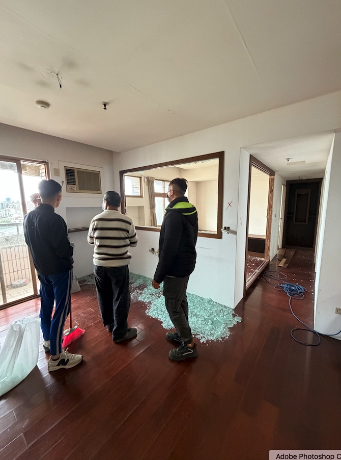施工專業,動作俐落,小工程也處理得一絲不苟,非常滿意!敲除過程迅速,最讓我驚訝的是垃圾清運非常徹底,是一家很有素質的工程行。約定時間準時出現,施工進度完全符合預期,甚至比預定時間還早完工,非常專業。 報價透明,過程中沒有亂加價,小工程也拿出一流的態度,服務品質沒話說。