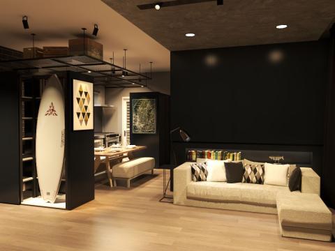 四照設計工程有限公司 - 通常在平面配置圖完成後的第一次討論還會出一個簡單的3D效果圖,功用大致就像建商經常會準備的模型屋,只是改用圖面表示並且更加細緻,所有的配置、格局一目了然,特別是對於空間的相對性展現,也能協助業主針對各部位細節的功能性進行討論。雖然相當費工,但對我來說是一個非常重要的核心程序。
