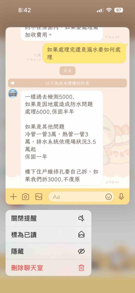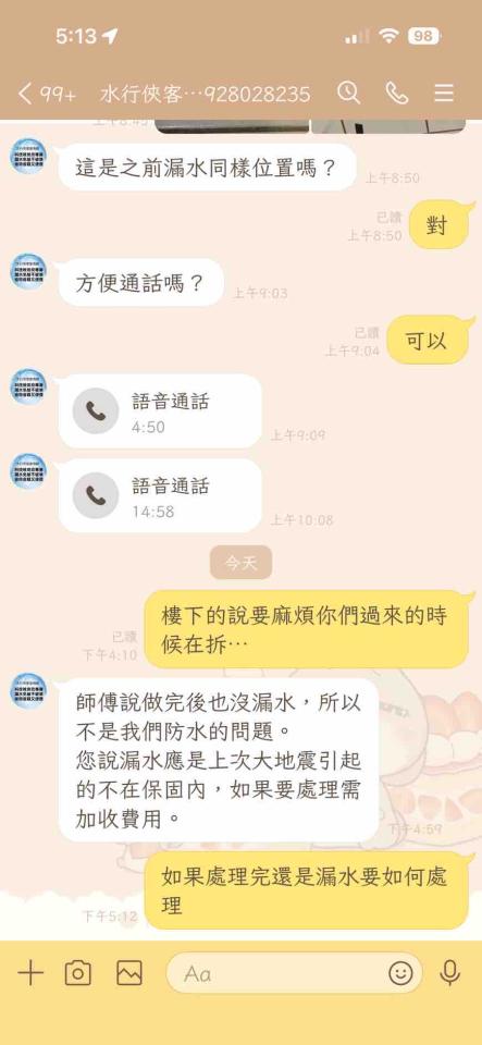 公司秉持誠信經營原則,人為使用,天災不可控因素,施作都有告知。也誠意提供解決方案您不願意,其他非原施作項目報價有錯嗎?您這樣說法有失公允。