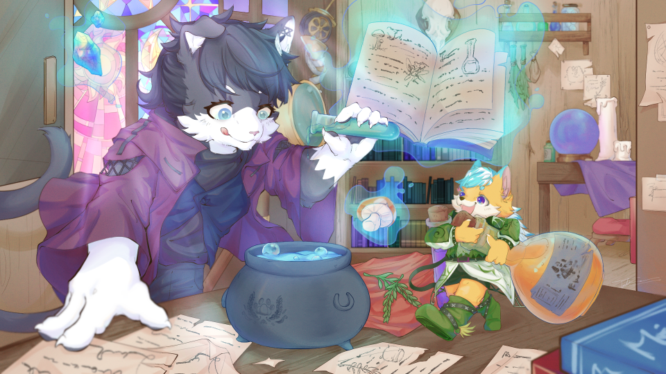 擅長場景插圖、立繪創作、角色創作。創作內容90%是動物擬人相關,也較擅長描繪動物外型。溝通基本無障礙,有要求皆可提