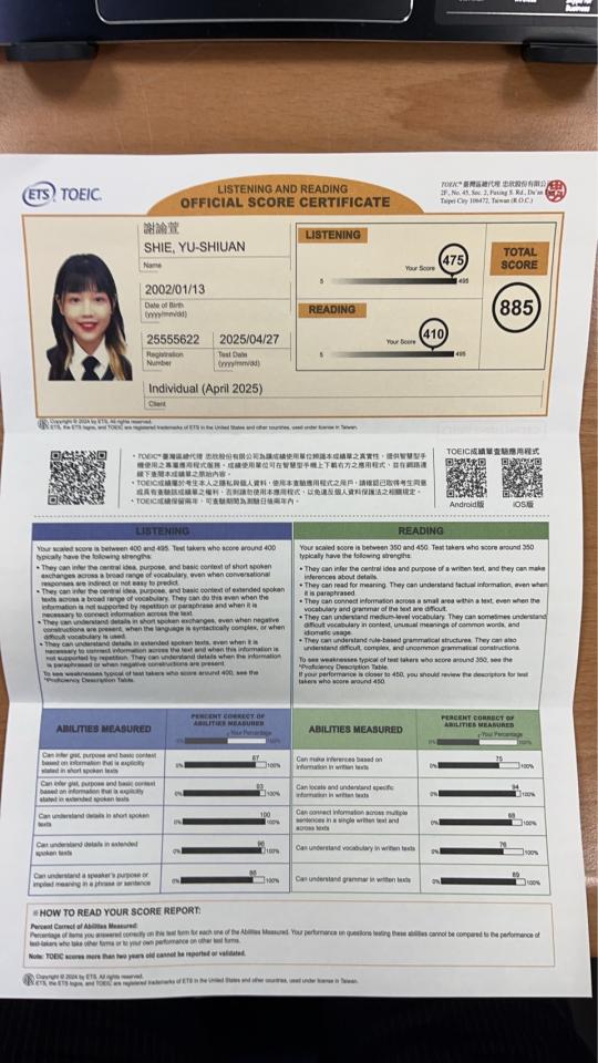 國立東華大學民族語言與傳播學系,雙主修英美語文學系,現職南港科技業工程師,認真負責,不怕陌生,身上有許多隱藏技能,現代最斜槓代表,歡迎合作解鎖成就!