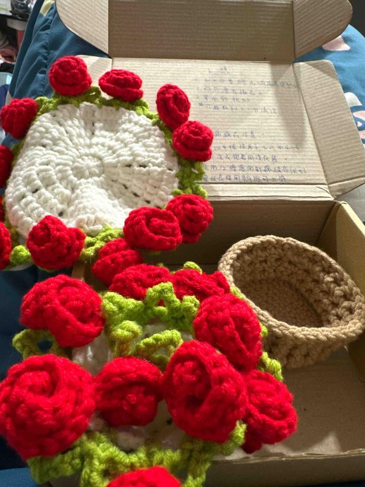 請老師幫我完成玫瑰花杯墊的編織,一開始選這個圖案,是因為被那立體的玫瑰花瓣吸引,覺得它不只是實用的杯墊,更像是一件小小的裝飾品,可以讓日常的生活增添一點浪漫。還織了籃子真的是太驚喜了!還有溫馨提醒!送給家人情侶在適合不過了 感謝老師