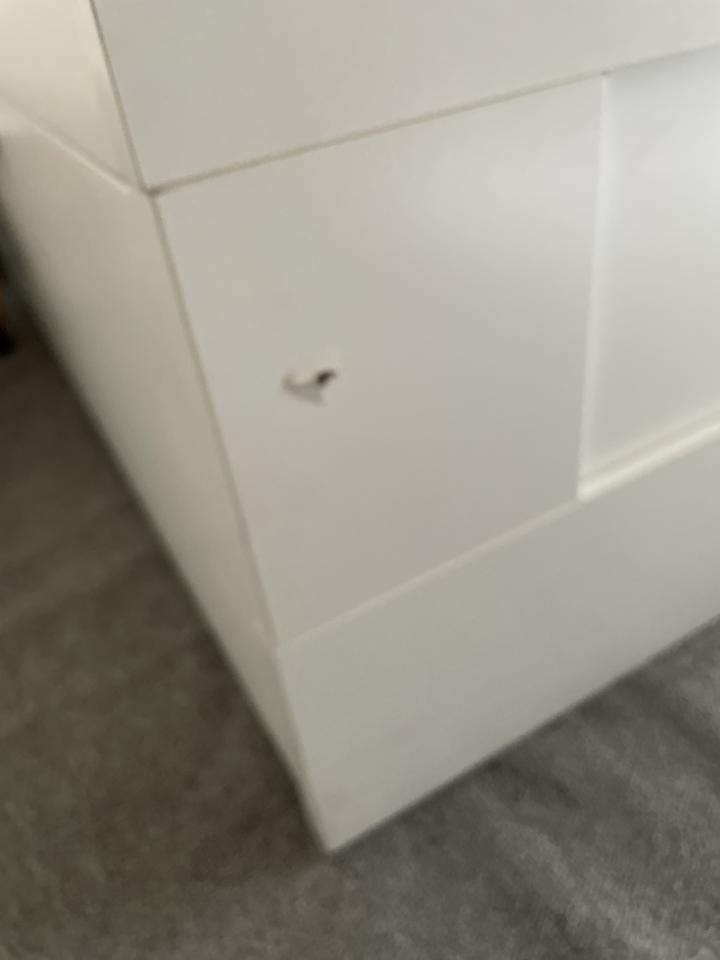 床版裝錯邊還打洞,再把它翻回來。在我的床框留下兩個洞。衣櫃搬運的時候把掛桿的卡隼弄斷,衣櫃的拉門到現在都有摩擦的聲音。拆的時候沒有按照原來的洞或是方向裝回去,露出來的都是洞痕