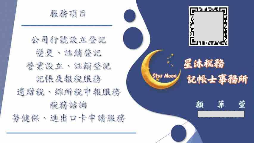 台中科技大學會計系畢業,在事務所就業七年累積經驗,至今接觸過各行各業,知曉記帳報稅的細節,能為您辦理公司行號登記、變更、記帳報稅以及個人綜所稅申報等等相關稅務諮詢。