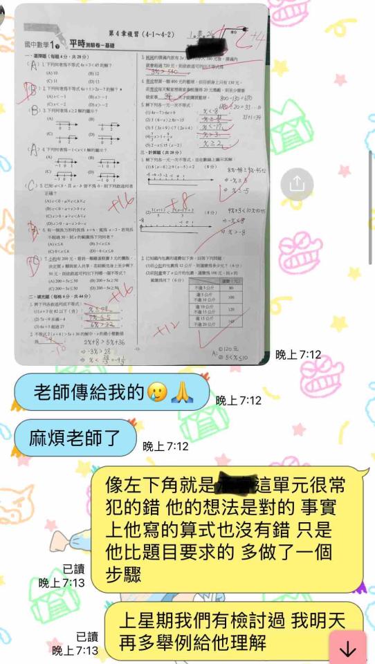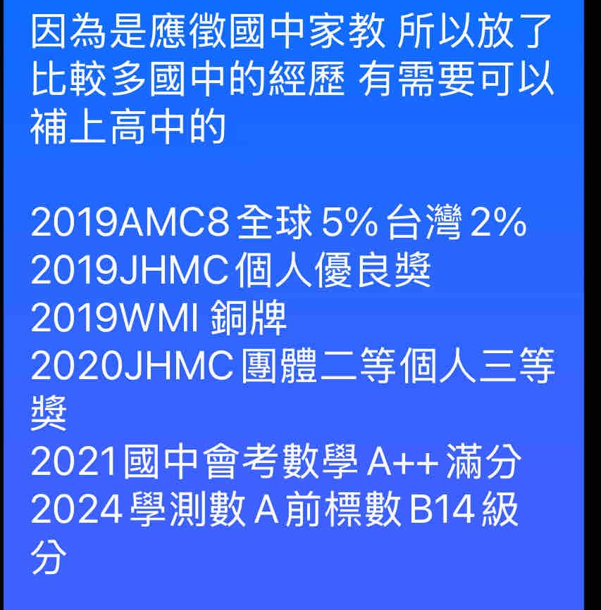 常見問題 1.自我介紹 對教學有熱情 本身是數學系學生 能夠從學生角度出發 提供各種方法 2.專業背景 目前還是大學生 3.服務方式 個人家教 可以實體也可以線上 4.收費方式 可以現金 也可以提供匯款 5.來往客戶 國中有數理加強需求的學生 6.案例分享 幫助學生從不及格到穩定80+ 7.專業建議 需要尋找能理解學生難題的老師