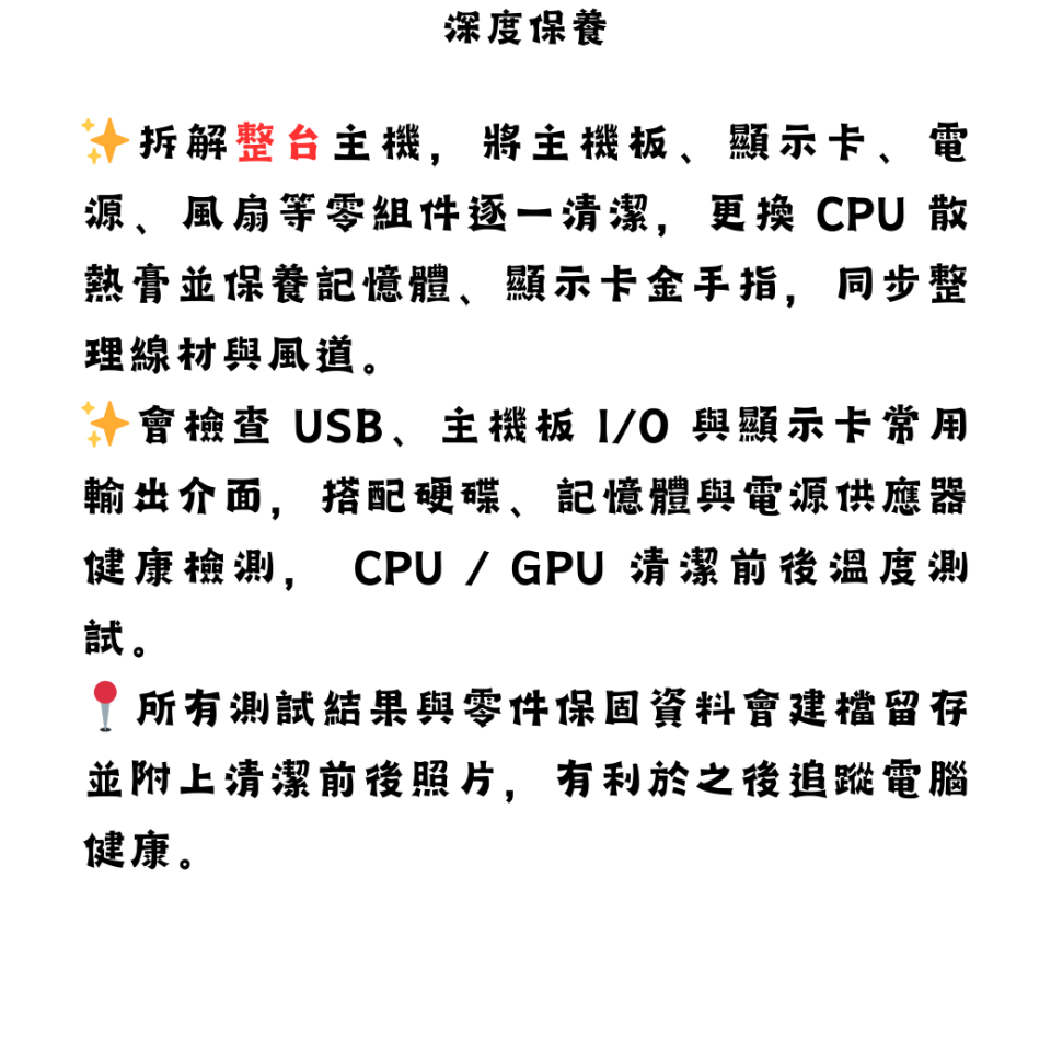 • 顯示卡完整保養