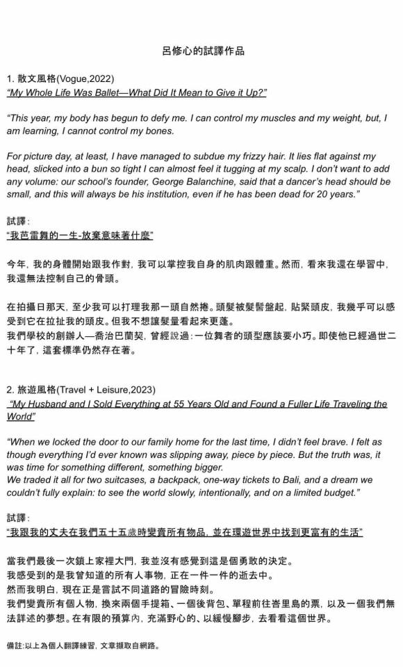 近期想嘗試接英中翻譯的作品