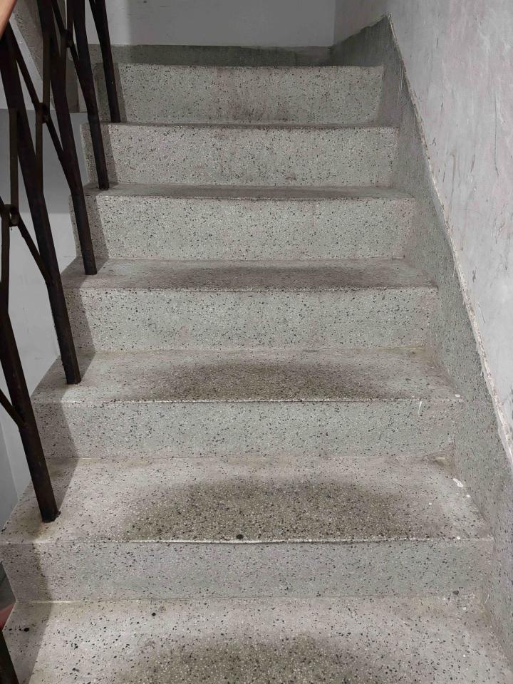 (我很注重品質,對自己洗完的樓梯相當有自信,我『洗完』的樓梯是可以讓住戶脫鞋光腳走路)