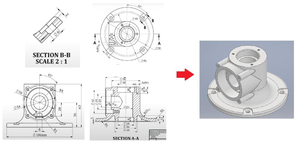 機械製圖2D工程圖繪製成3DCAD檔
