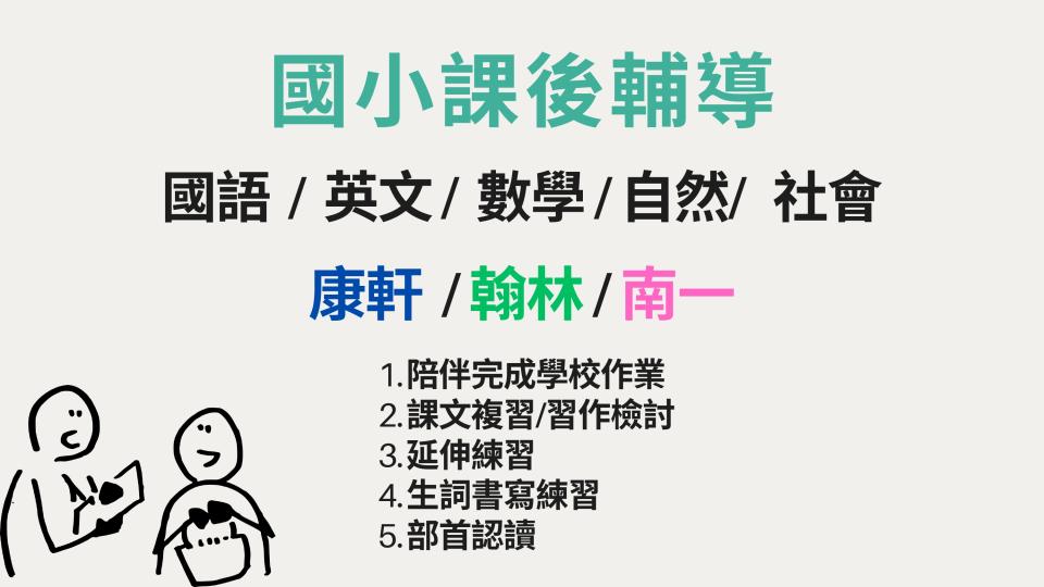 伴讀/陪玩 國小課後輔導 國文家教 中文學習