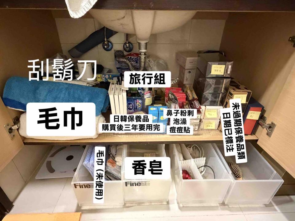 欣欣 - 原本塞滿不好找東西的洗手台收納櫃,我一看就知道裡面一定有發霉跟過期的東西,全部清出來後刷過,在分類好各類東西,過期的放一邊請客戶自行斟酌是否要捨棄,然後就還給客戶一個乾淨的收納櫃啦❤️