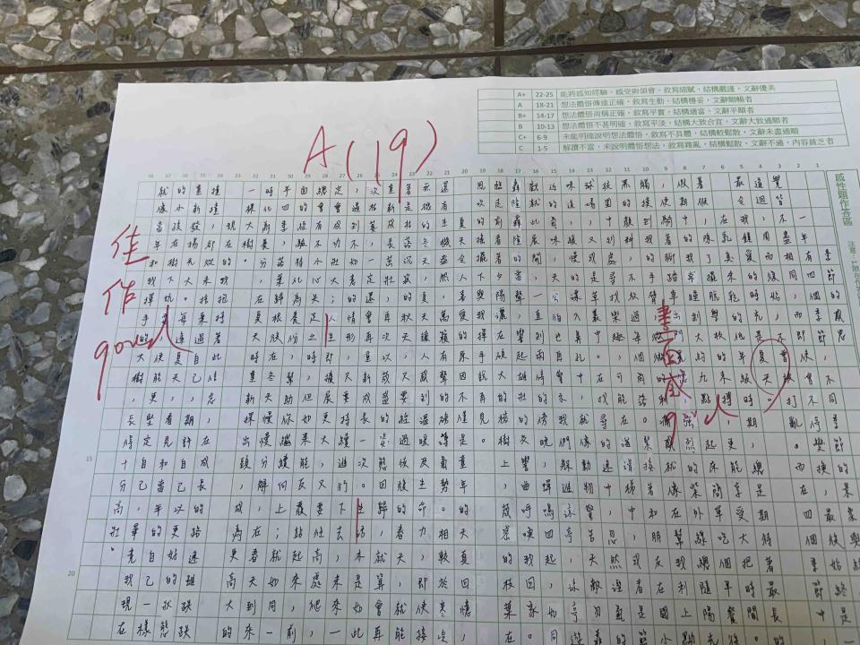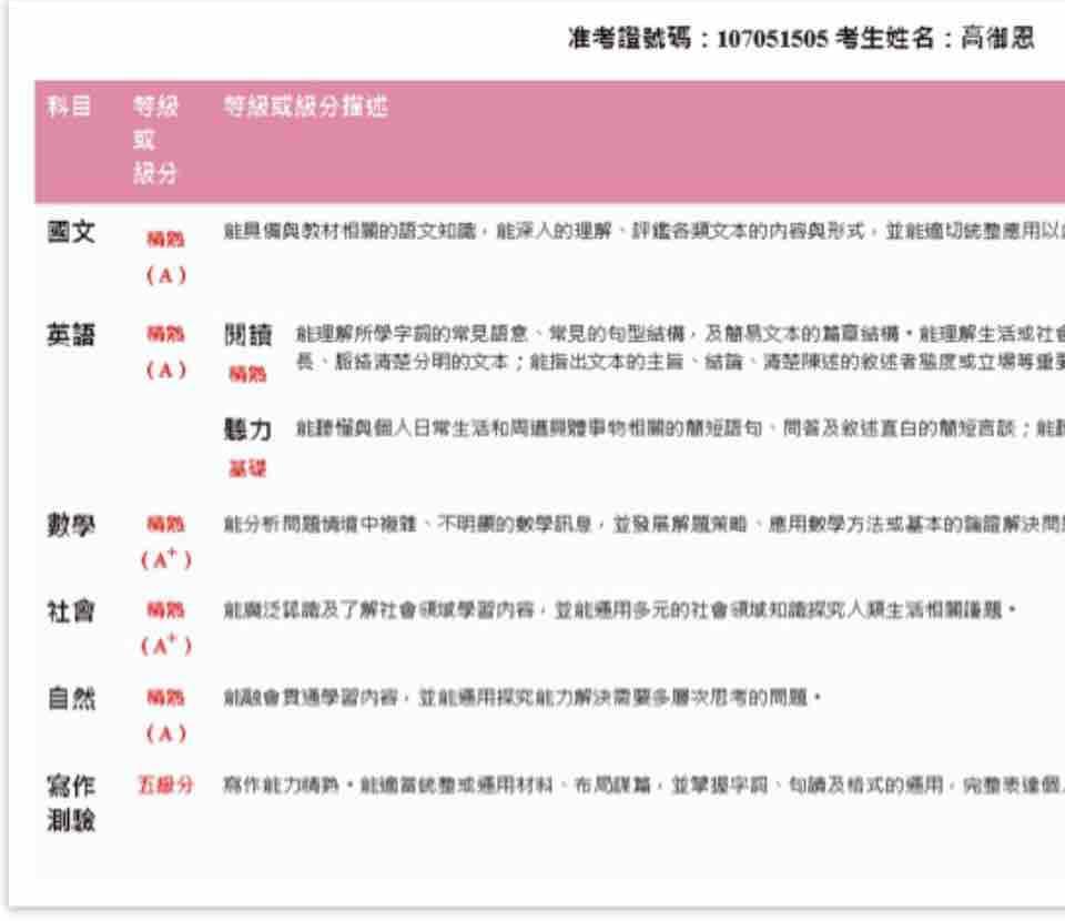 作文知性與情意兩大題皆為A等第(最高)