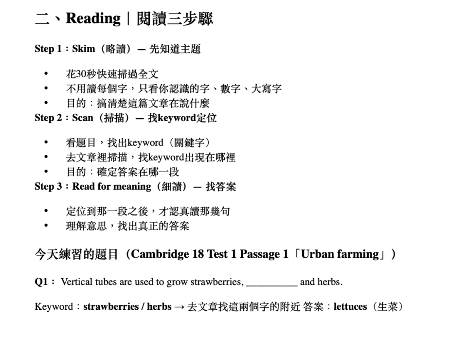 Amber|IELTS 7.5 家教|體驗課 $500 - 學生中文版客製講義